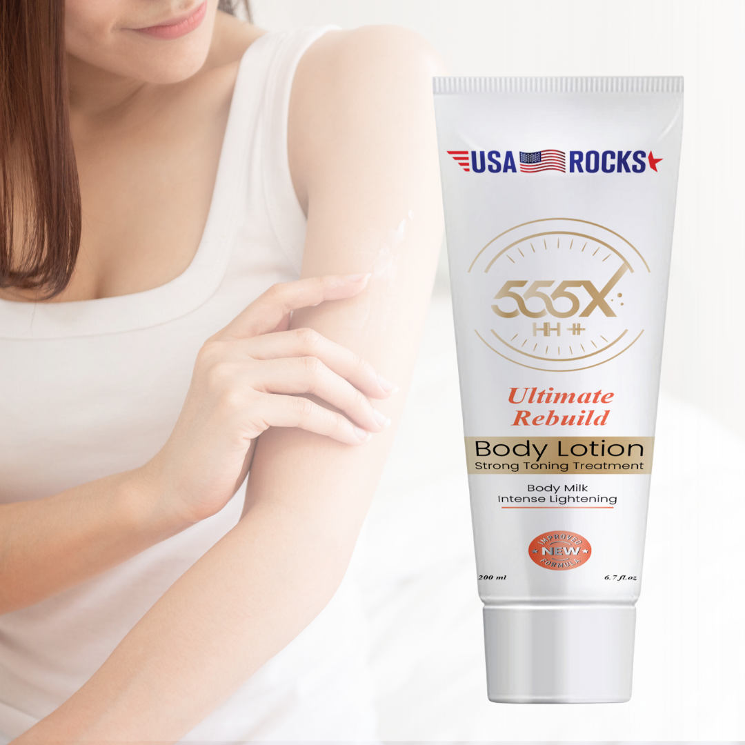 Unveil the next level of skin perfection with 555X Ultimate Rebuild Body Lotion. This advanced formula goes beyond ordinary lotions, delivering a trifecta of hydration, firmness, and radiance.
