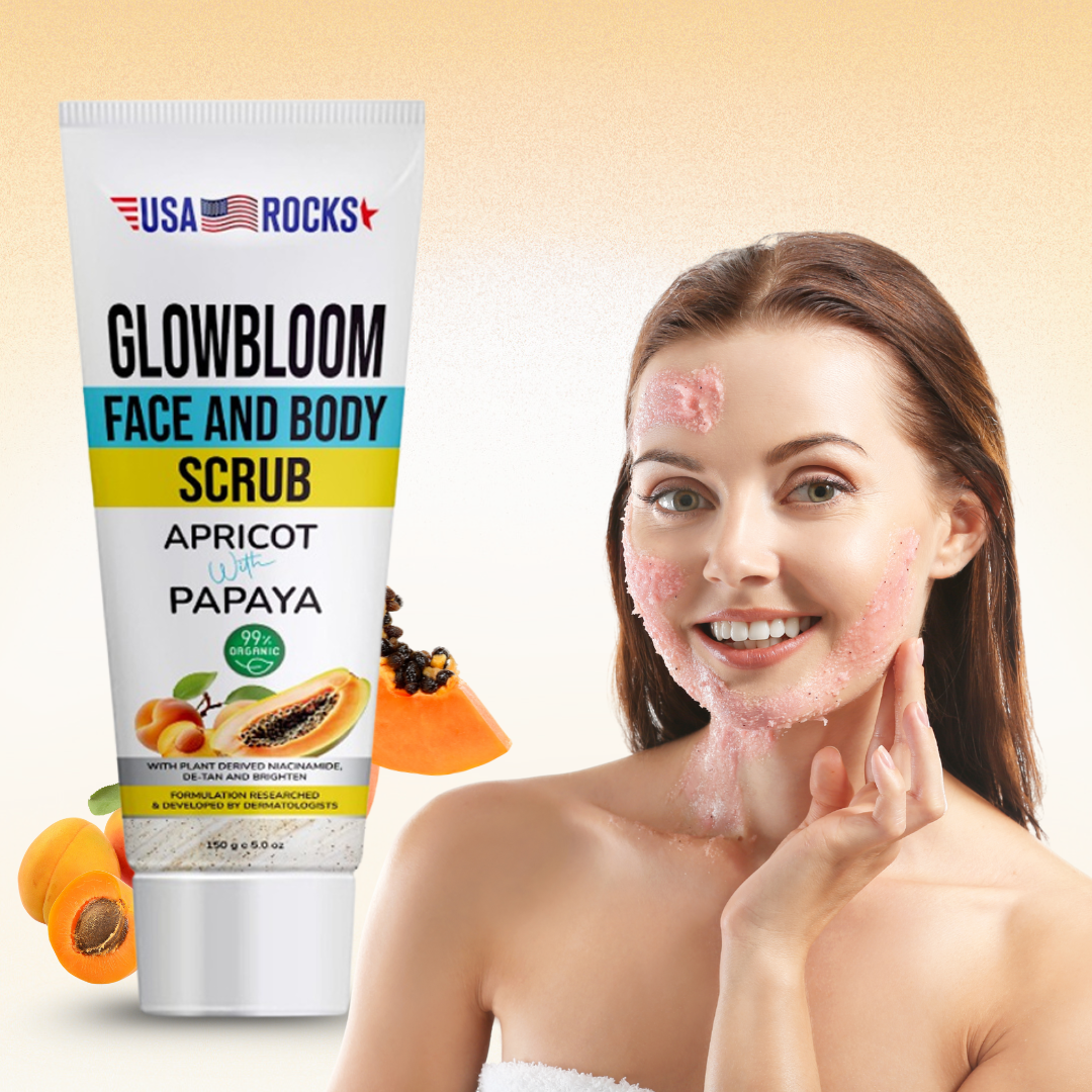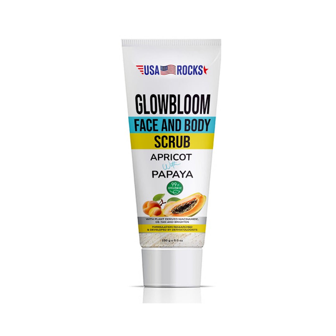 Reveal your skin’s natural radiance with the USA Rocks Face & Body Scrub, expertly formulated with Apricot and Papaya Extracts to exfoliate, de-tan, and brighten. This luxurious scrub harnesses the power of Niacinamide to even skin tone, revealing smoother, healthier skin.